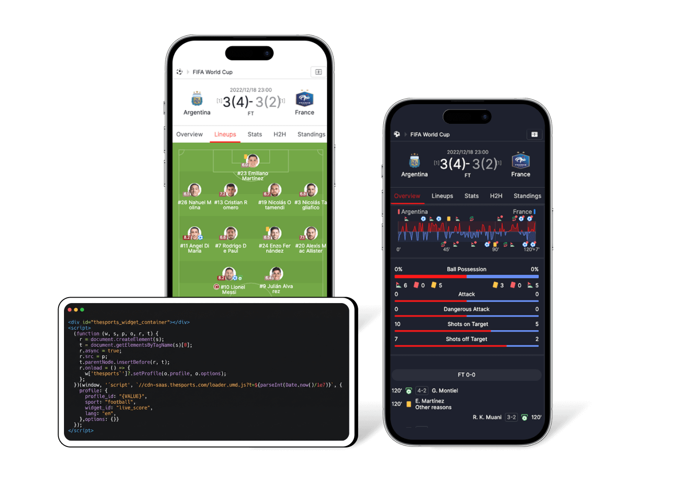 From high-speed APl feeds to ready-to-use widgets and dynamic live match trackers, we provide everything you need to narrate World Cup 2026 with unparalleled detail and visual impact.