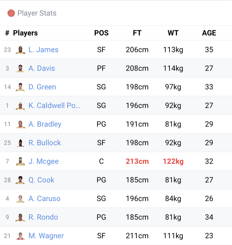 The team squads provides a full squad list for a specific team.