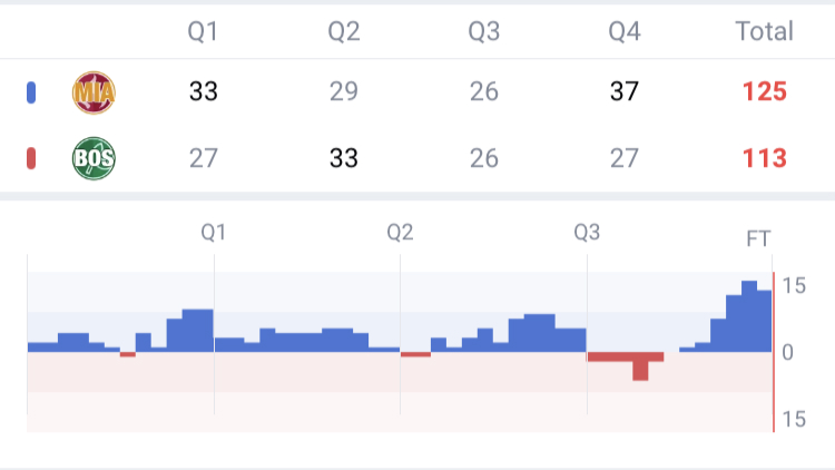 The Basketball Game Flow shows the maximum point difference and the game trend in the game.