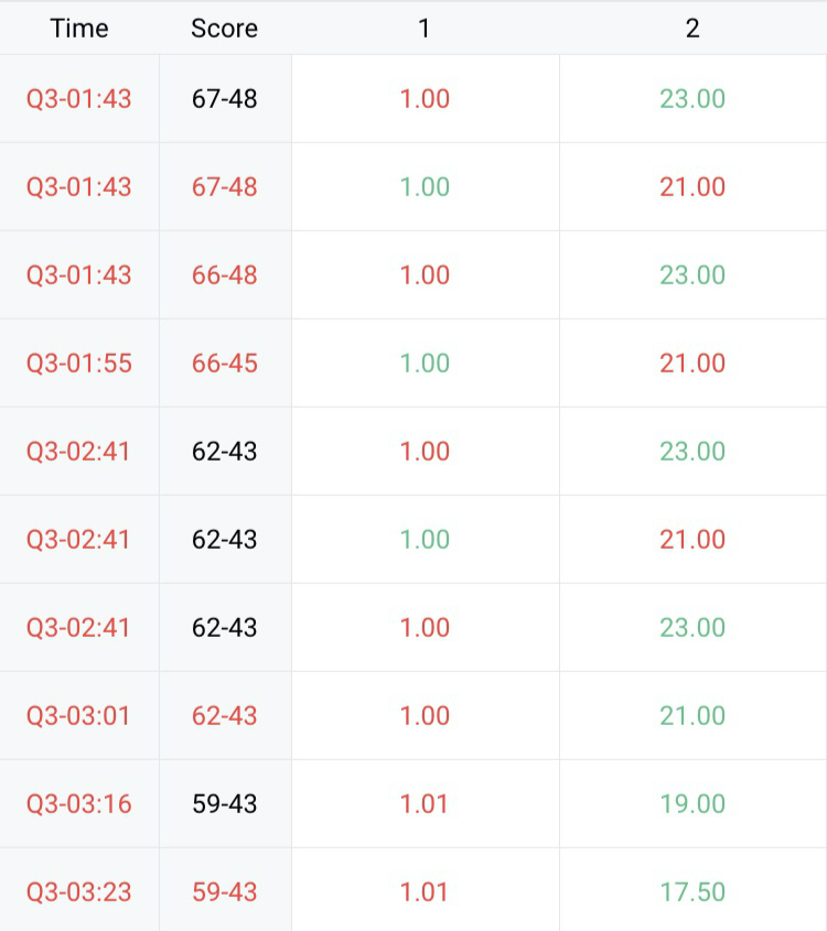 Through our odds API, you can get real-time updated odds data. In addition, you can also query the Open Odds. Most importantly, all 3 coupons (To Win, Spread, Total Points) offer In-Play Odds!