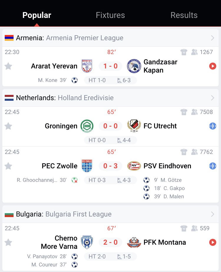 Our real-time scores have the fastest update speed in the industry. At the same time, it also contains the most events in the world. Even in some remote areas, we can still provide real-time score updates.