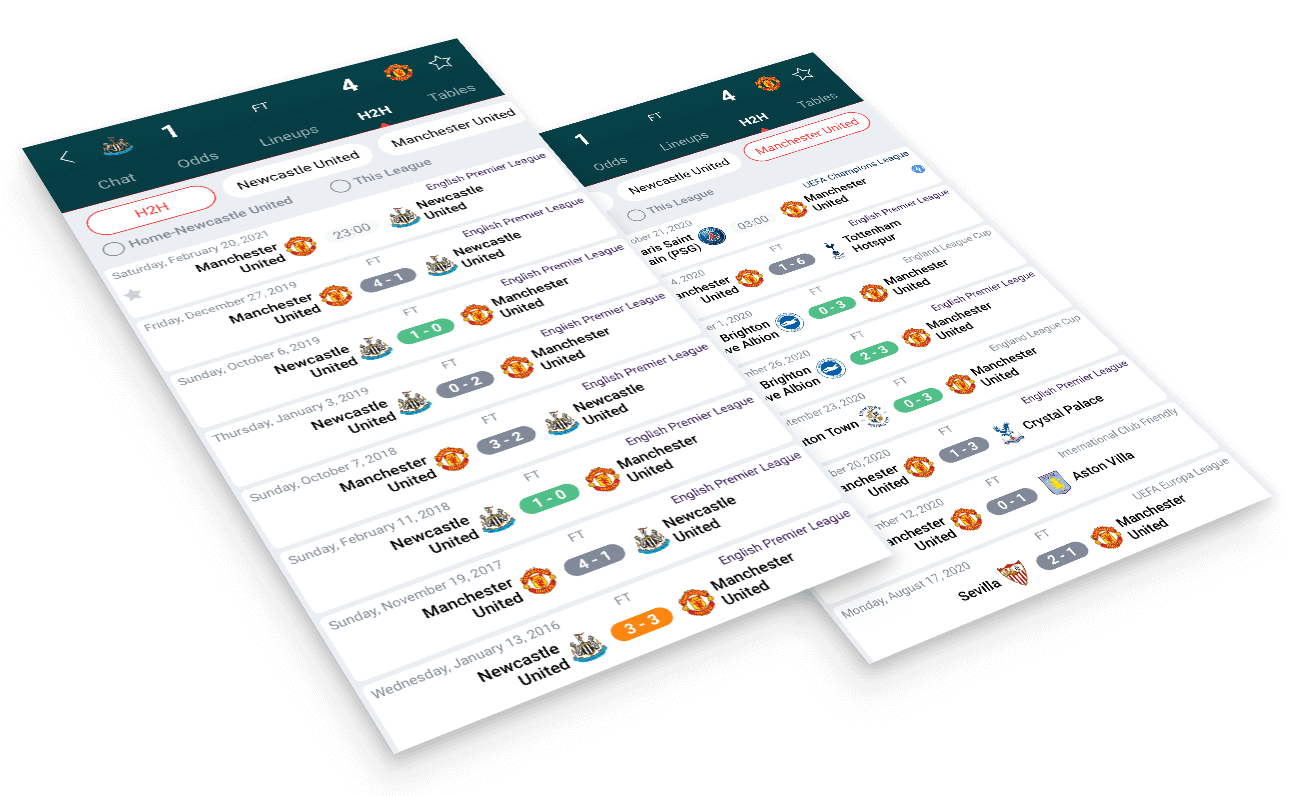 In addition to the match data and standings, H2H is the most inquired function for users. Our data will always be updated in the first time.