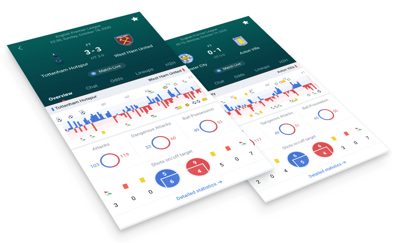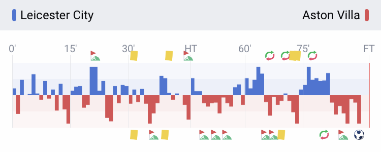 The Football Momentum draws a comparison chart based on the game events on the court, so that you can understand the game trend at a glance.