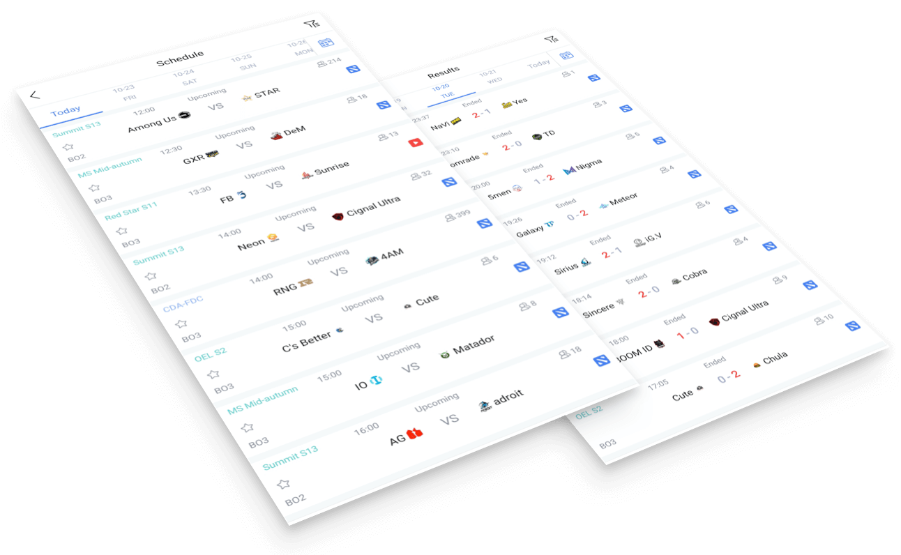 We have included hundreds of tournaments of leagues and cups, we are constantly enriching our coverage to providing global esports practitioners with a more comprehensive and accurate matches.
