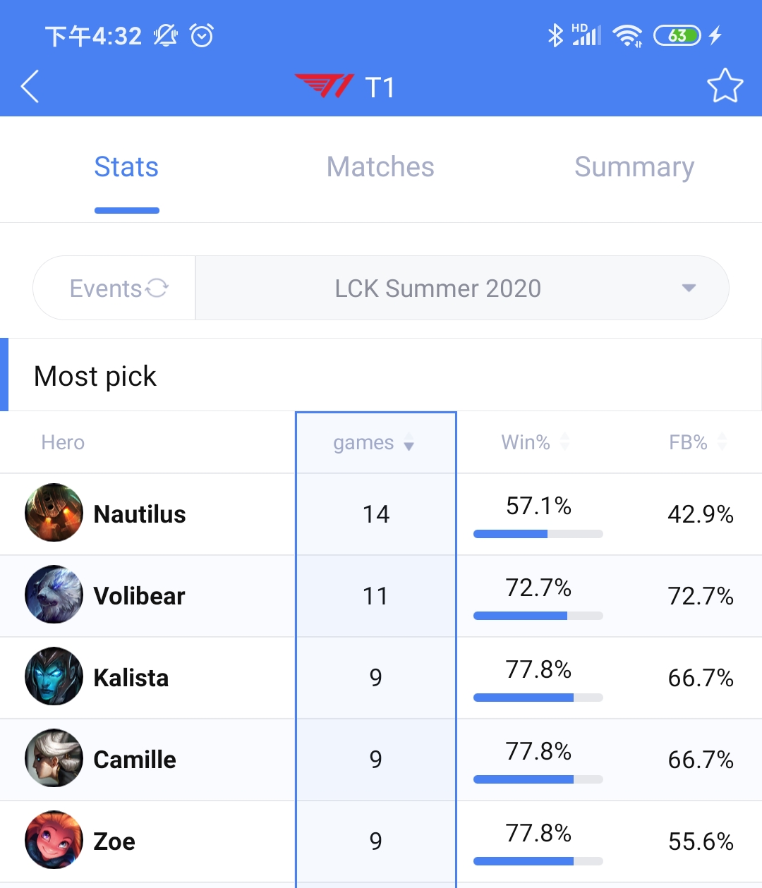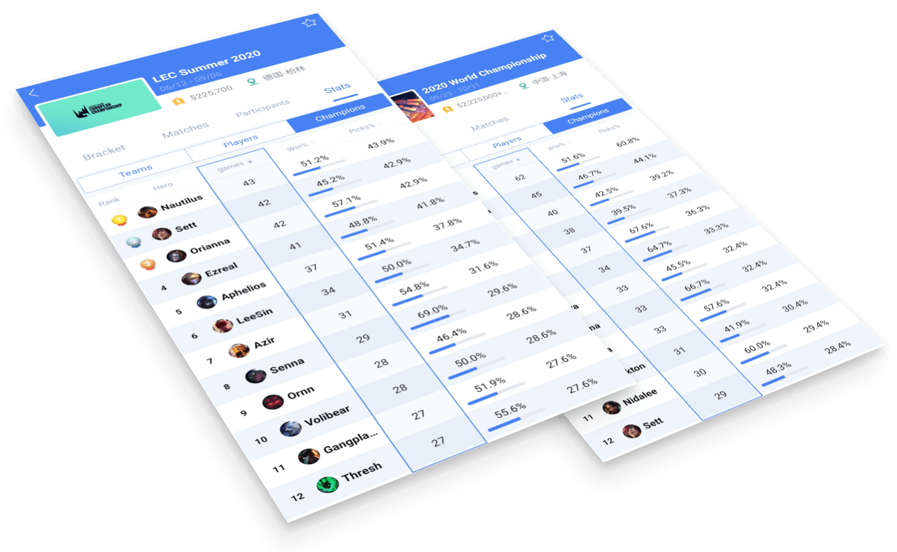 Each league has a corresponding hero list, you can view a single dimension of the hero ranking